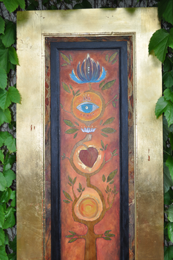 The “Tree of Life” is a timeless and profound icon which embodies the vital energies of life. In this piece, the symbols of the chakras/seven sacred truths are woven within the tree, each representing the energies we are intended to explore throughout our lives. These truths transcend cultural boundaries and at the symbolic level they create a roadmap for each of our personal journeys. My hope is that this piece opens doors and stirs personal recollections of the connection between nature and the human spirit.